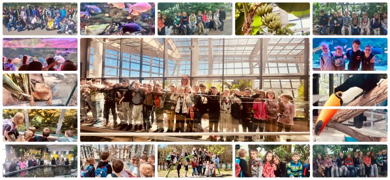 Podczas wizyty uczniowie mieli okazję poznać różnorodne gatunki 🌴🍌roślin i zwierząt🐠🦋 z różnych stref klimatycznych świata. Szczególne zainteresowanie wzbudziły egzotyczne rośliny, akwaria z rybami oraz terraria z gadami i płazami. Dzieci z zaciekawieniem obserwowały życie zwierząt oraz czytały informacje o zwierzętach.