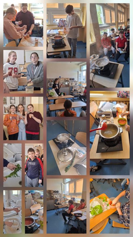 Klasa 5c w ramach innowacji WychodziMy poza SchemaTy gotowała zupę pomidorową🍅 podczas lekcji techniki. Uczniowie poznali pojęcia związane z gotowaniem, metody zagęszczania zupy i przedłużenia jej trwałości. Dla uczniów klasy 5c nie straszne już gotowanie. Zupa wyszła przepysznie, a zabawa przy tym była wyśmienita!😊