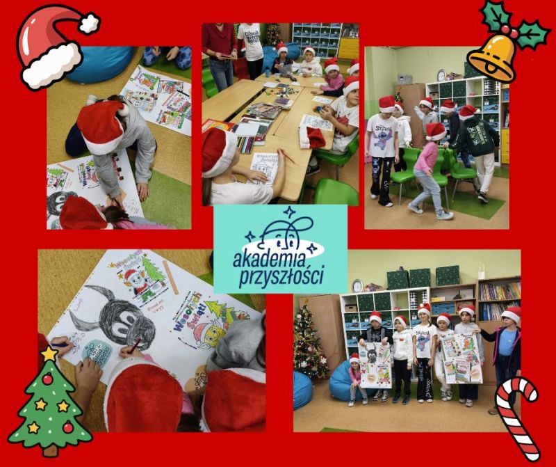 W poniedziałek 8 grudnia w naszej szkole odbyło się mikołajkowe spotkanie w ramach Akademii Przyszłości. W świątecznym nastroju mile spędziliśmy popołudnie, wykonując piękne prace plastyczne przedstawiające katowickie beboki. Zrobiliśmy z nich plakat. Nie obyło się bez zimowej herbatki i pierniczków. Pod koniec wzięliśmy udział w kilku aktywnych zabawach i wymieniliśmy się swoimi wspomnieniami z mikołajek.