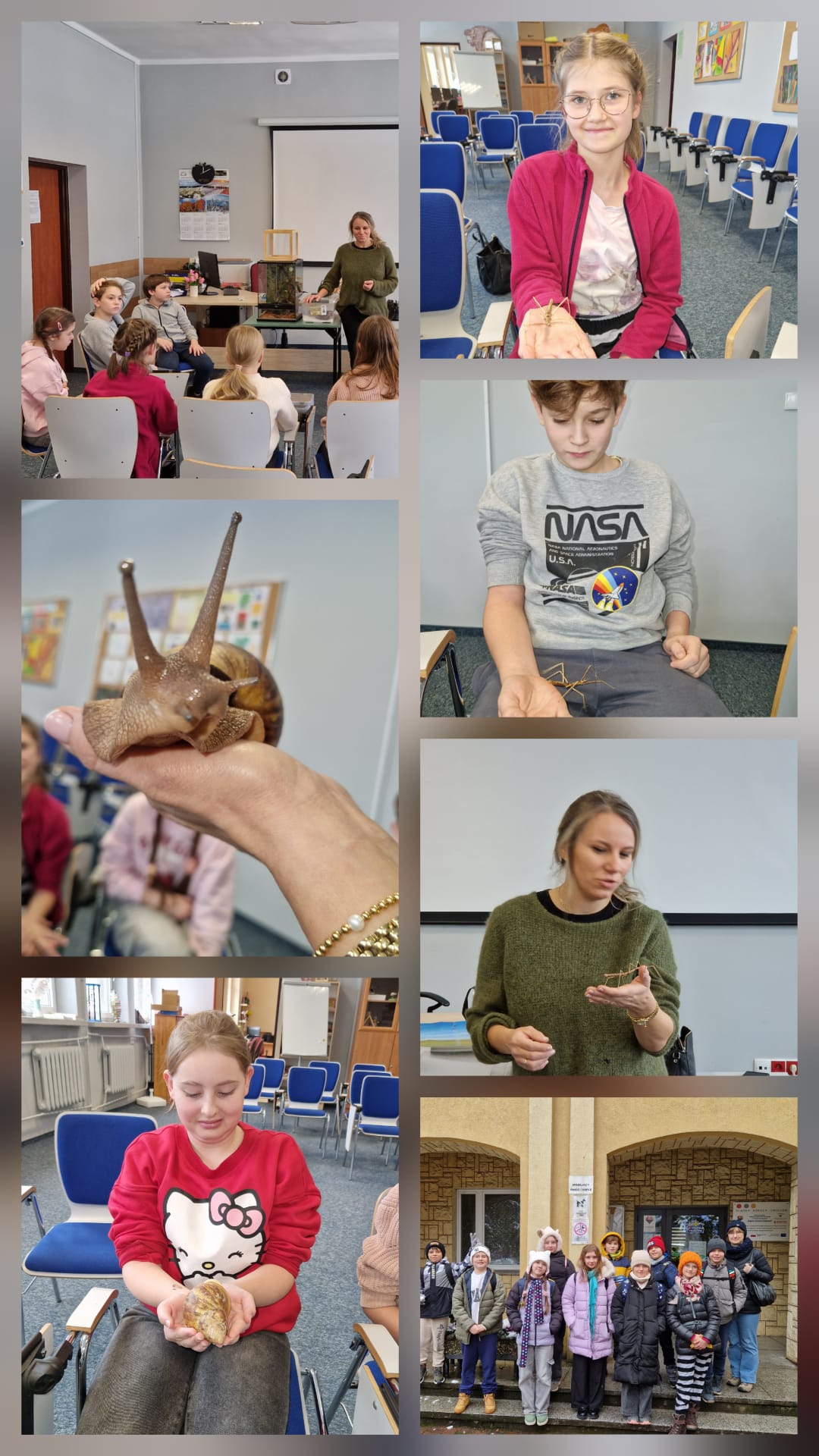 27 listopada klasa 5c uczestniczyła w warsztatach w Zespole Szkół nr 2 w Katowicach w ramach Centrum Edukacji Ekologicznej. Warsztaty rozpoczęły się od tworzenia świątecznych skrzatów z gliny. Zabawa była świetna! Okazaliśmy się prawdziwymi artystami. Następnie dowiedzieliśmy się, w jaki sposób oczyścić wodę, aby nadawała się ona do picia i od razu naszą wiedzę wykorzystaliśmy w sposób eksperymentalny. Spotkanie zakończyło się porządną dawką wiedzy o patyczakach i ślimakach. Zwierzaki chyba nas polubiły. Warsztaty się skończyły, ale świetne wspomnienia i zdjęcia pozostały!