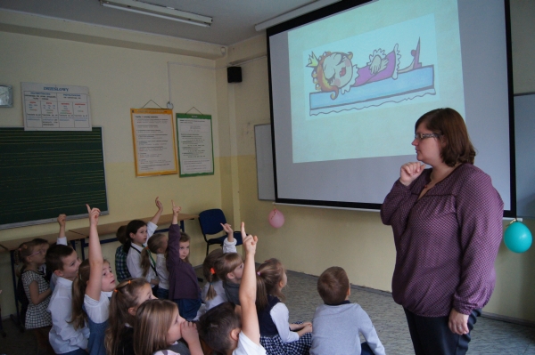 Pasowanie uczniów klas 1 SP na czytelnika - październik 2014