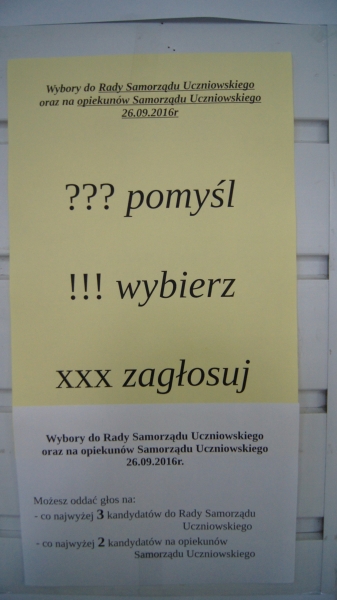 Wybory do Rady Samorządu Uczniowskiego i opiekunów Samorządu - 26.09.2016