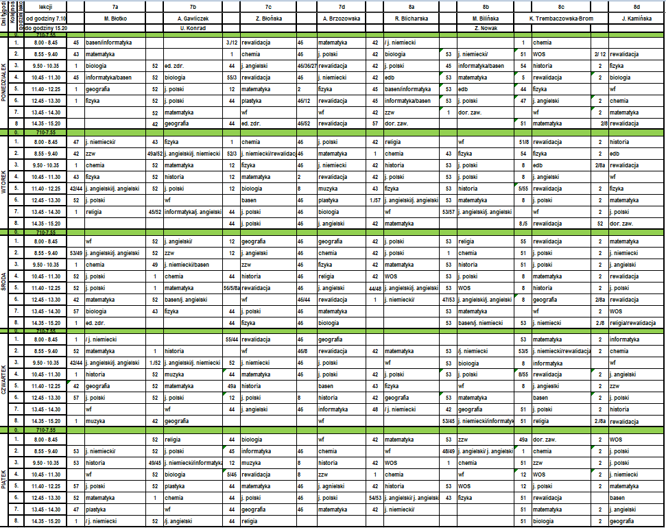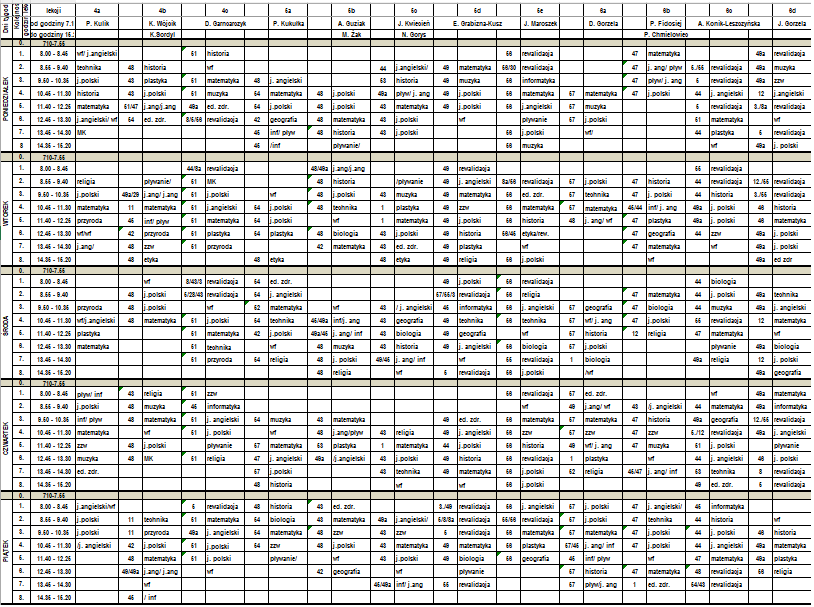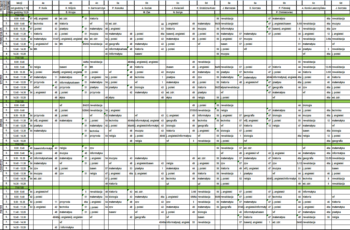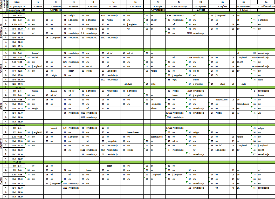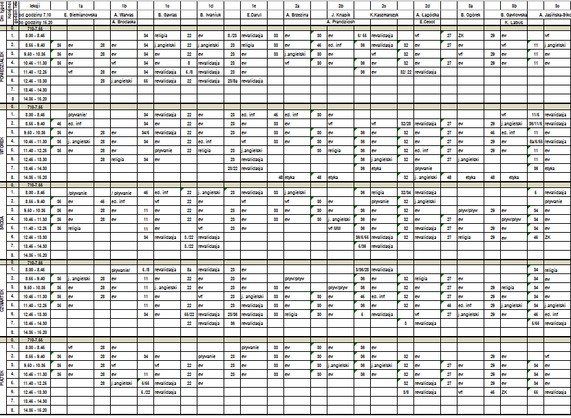 | Lekcja 0 07.10 - 07.55 | 05 | |